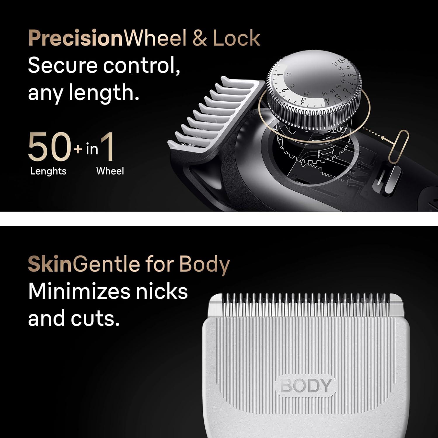 Unlimited Versatility: PrecisionWheel and Lock feature 40 length settings in 0.5 mm increments, giving you control over every trim for effortless beard care and shaving. AutoSense technology adjusts to beard density for a consistent, powerful cut.