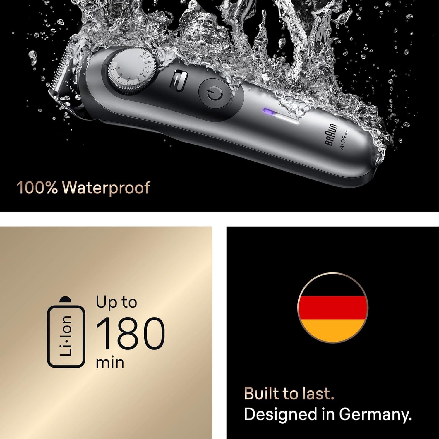 Built to Last: This built-to-last beard trimmer for men is titanium-coated for corrosion resistance and durability – Braun series 9 Pro is 100% waterproof with long-lasting Li-Ion battery and up to 180-min cordless runtime