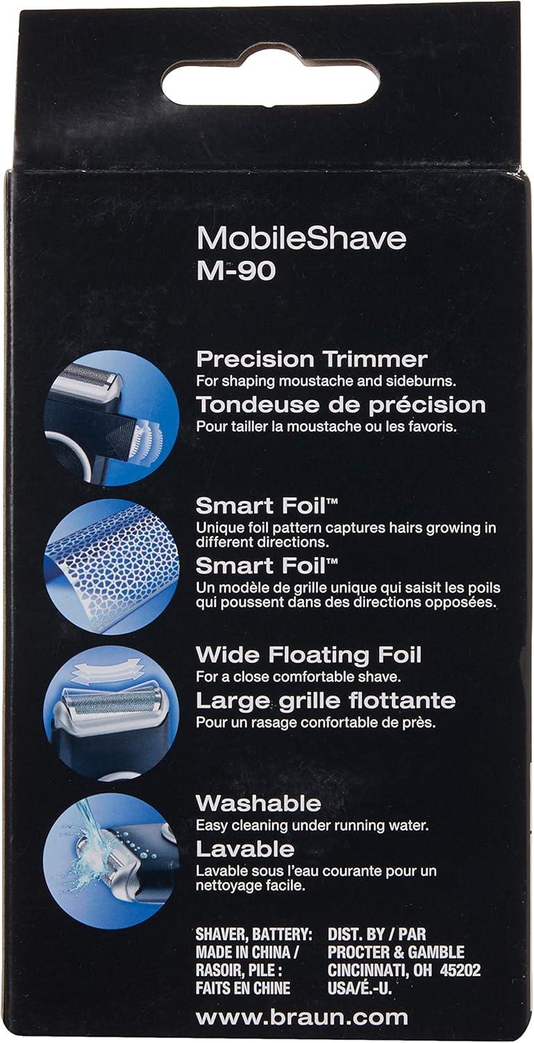 Braun Electric Razor for Men, M90 Mobile Electric Shaver, Precision Trimmer, Washable(Silver)