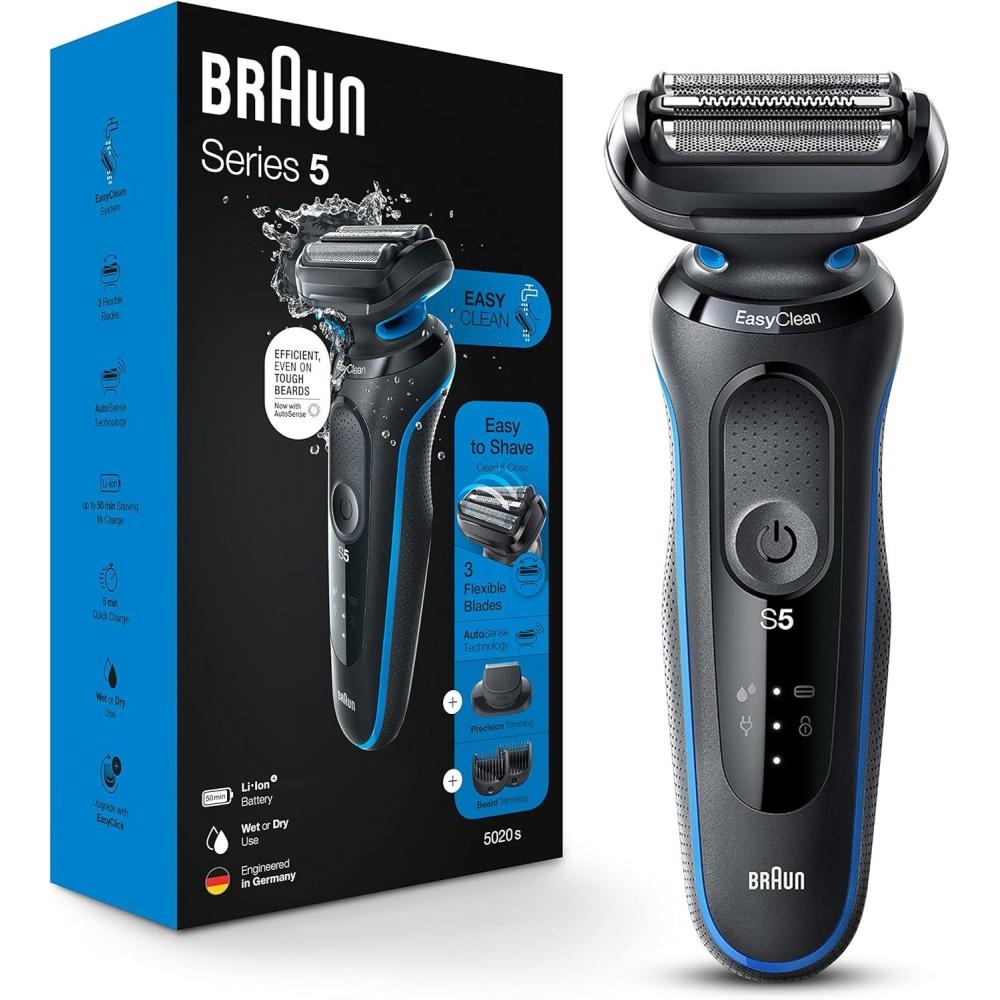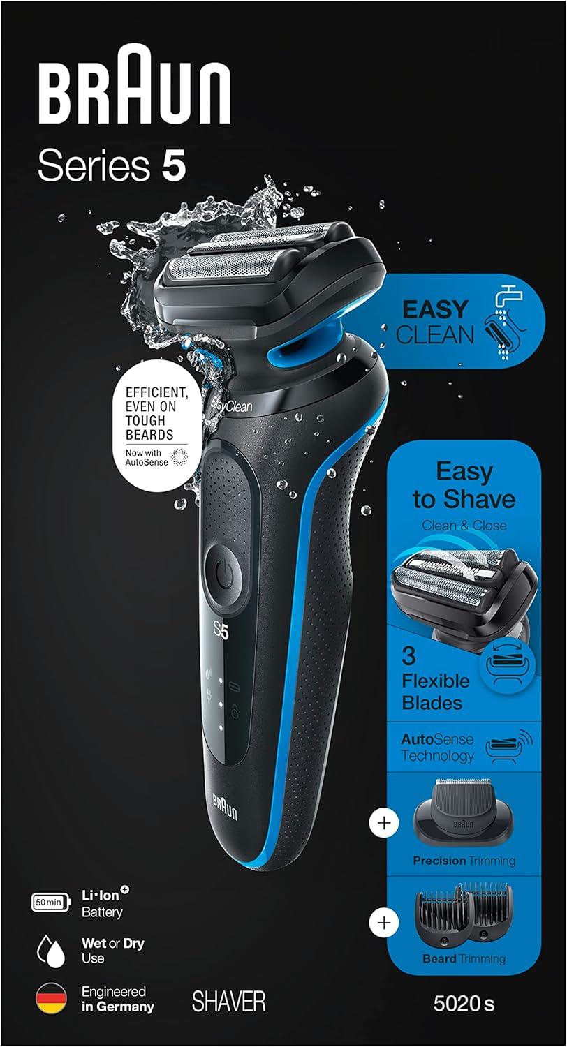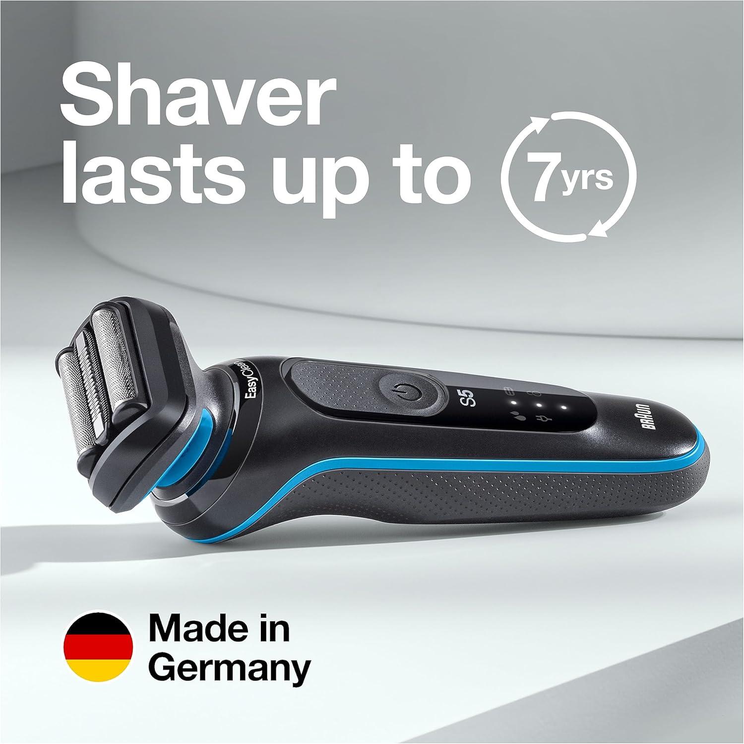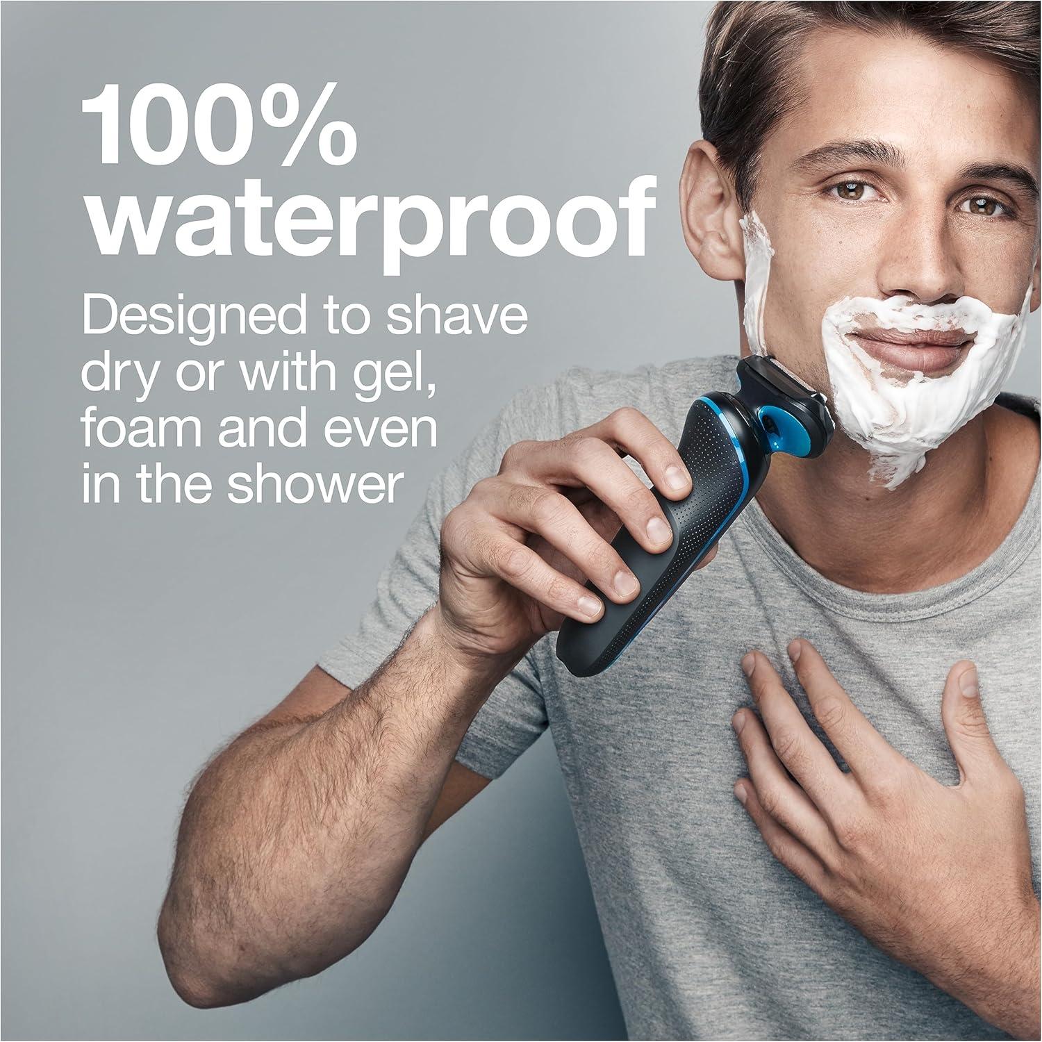 Braun Electric Shaver for Men, Series 5 5150cs, Wet & Dry Shave, Turbo Shaving Mode, Foil Shaver, with Beard Trimmer, Body Groomer and Charging Stand, Blue(Blue)