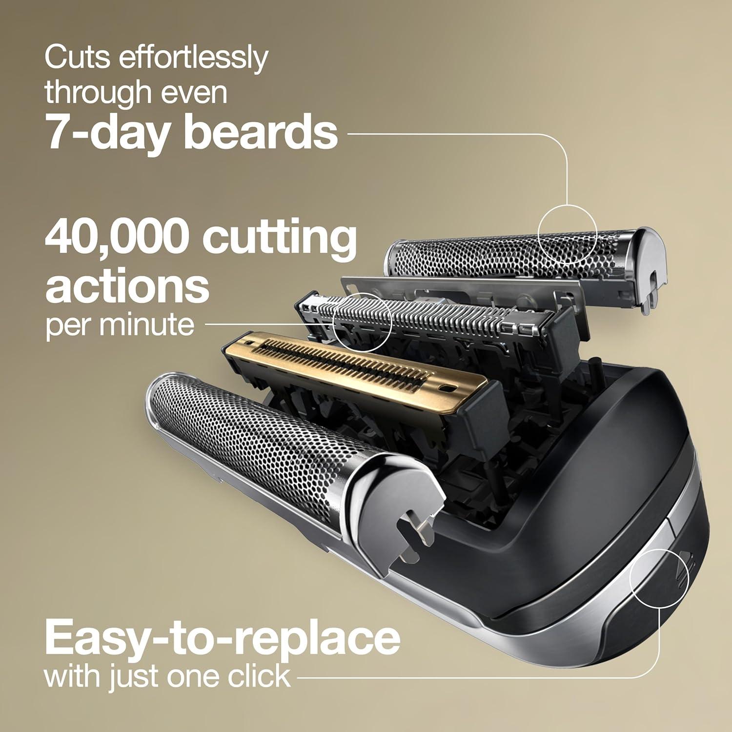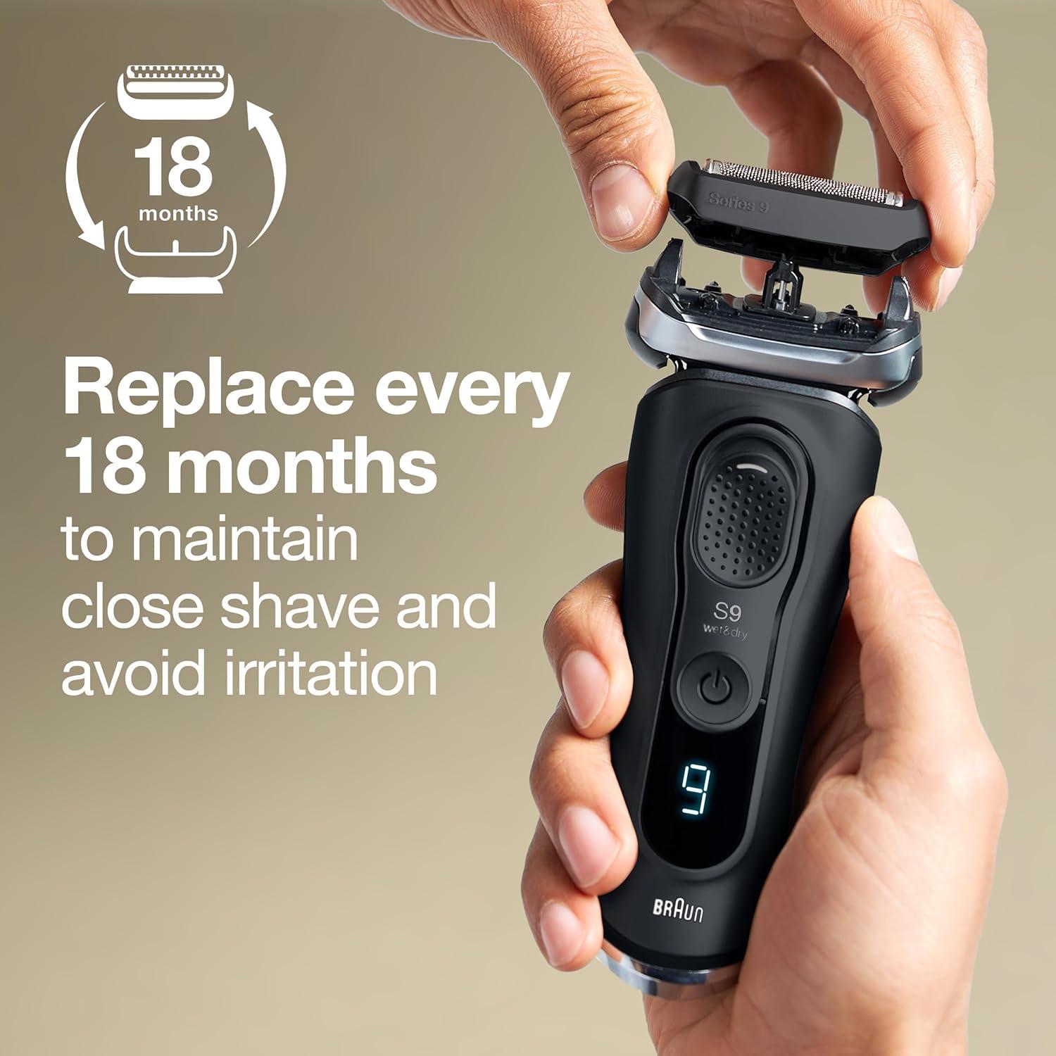 The average Braun shaver cuts 6 million hairs every 18 months. This means the head will gradually wear out and your shave can become less close and comfortable. That's why Braun recommends changing your shaver's foil & cutter block every 18 months to get your shaver back to its best. Take care of your shaver, and it will take care of you. Box includes: 1 X Series 9 Shaver Head Replacement, Black
