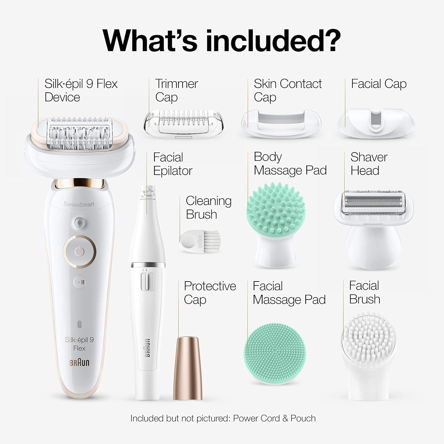 Braun Epilator Silk-épil 9 Flex 9-300 Beauty Set, Facial Hair Removal for Women, Hair Removal Device, Shaver & Trimmer, Cordless, Rechargeable, Wet & Dry, FaceSpa(SES9-300)