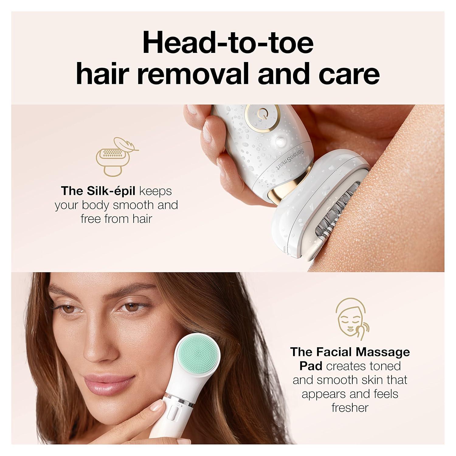 ALL-IN-ONE: deluxe hair removal beauty set to shave, trim, epilate, and massage with interchangeable heads, plus FaceSpa device for facial epilation and cleansing