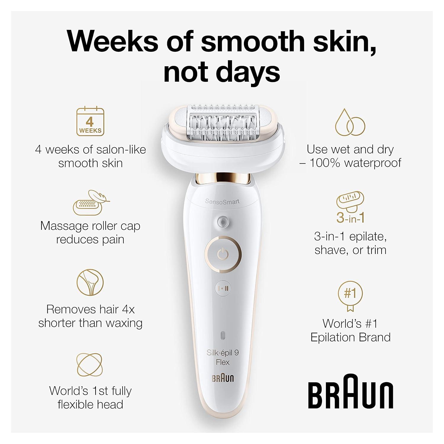 imageBraun Epilator Silkpil 9 Flex 9300 Beauty Set Facial Hair Removal for Women Hair Removal Device Shaver ampamp Trimmer Cordless Rechargeable Wet ampamp Dry FaceSpa9481
