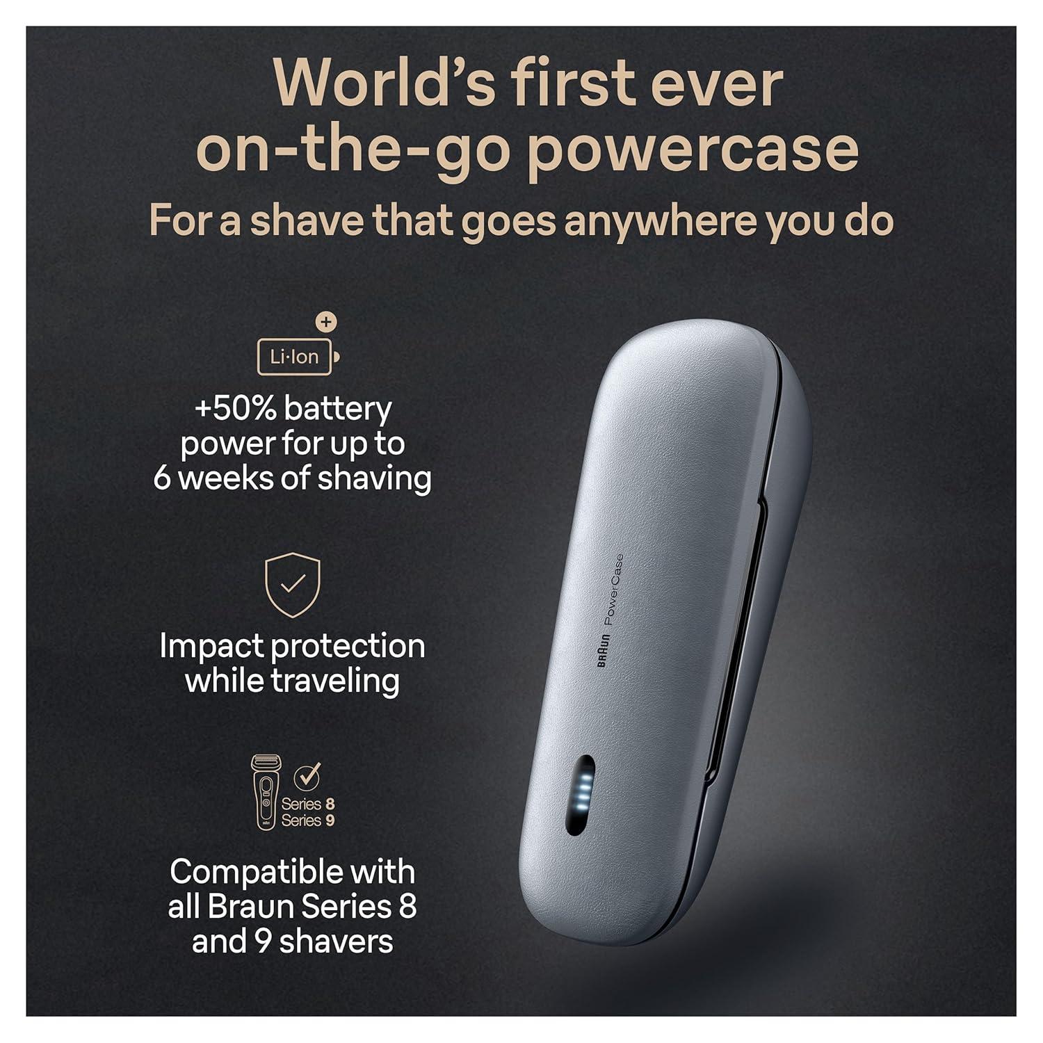 COMPATIBLE WITH SERIES 8 AND 9 SHAVERS: The Powercase is fully compatible with all Braun Series 9 and Series 8 electric shavers