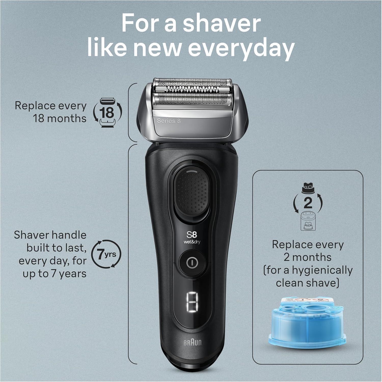 INCLUDES: Braun Series 8 8567cc Men's Electric Shaver with built-in Precision Trimmer, 5-in-1 SmartCare Center, Fabric Razor Travel Case and Cleaning Brush