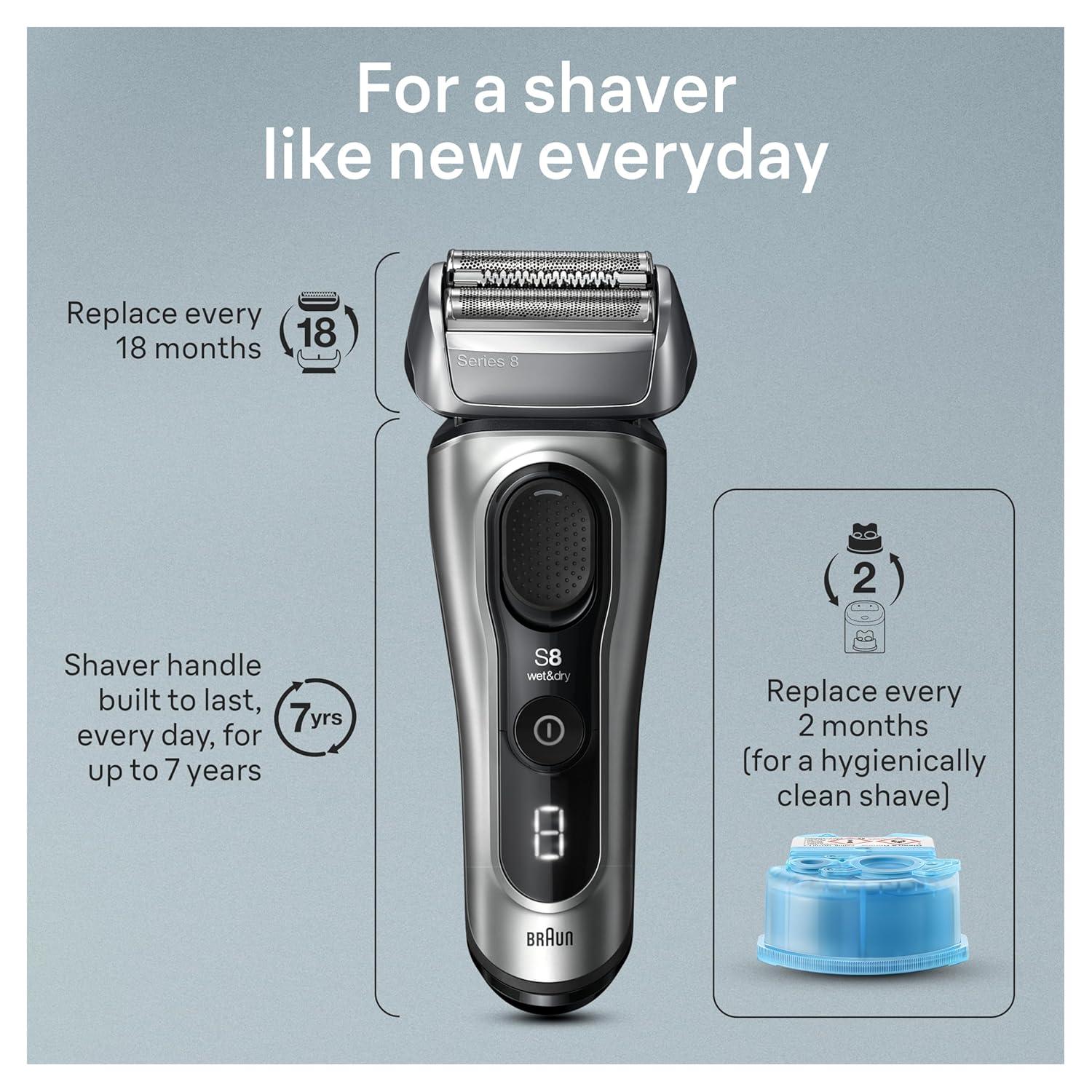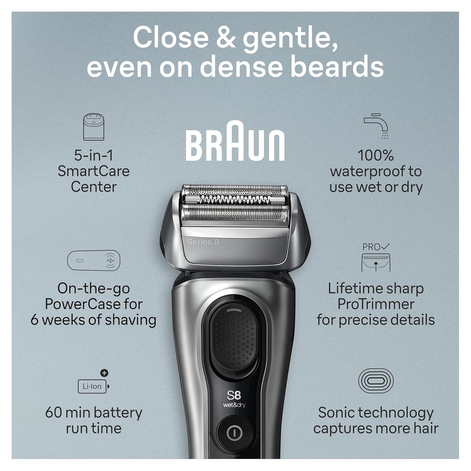 Braun Series 8 Electric Shaver, Shaving Kit with 4+1 Shaving Elements, Precision Long Hair Trimmer, SmartCare Center, PowerCase