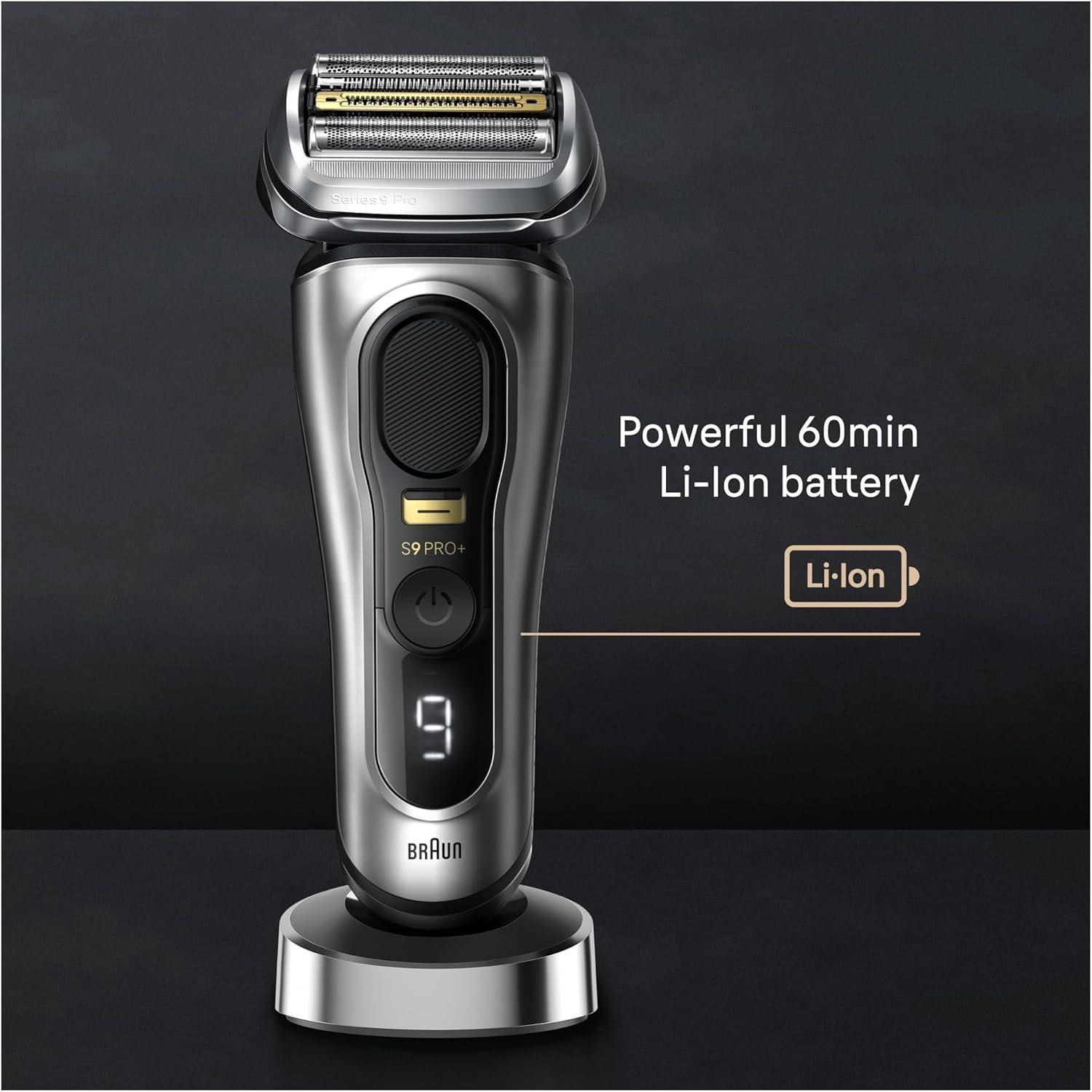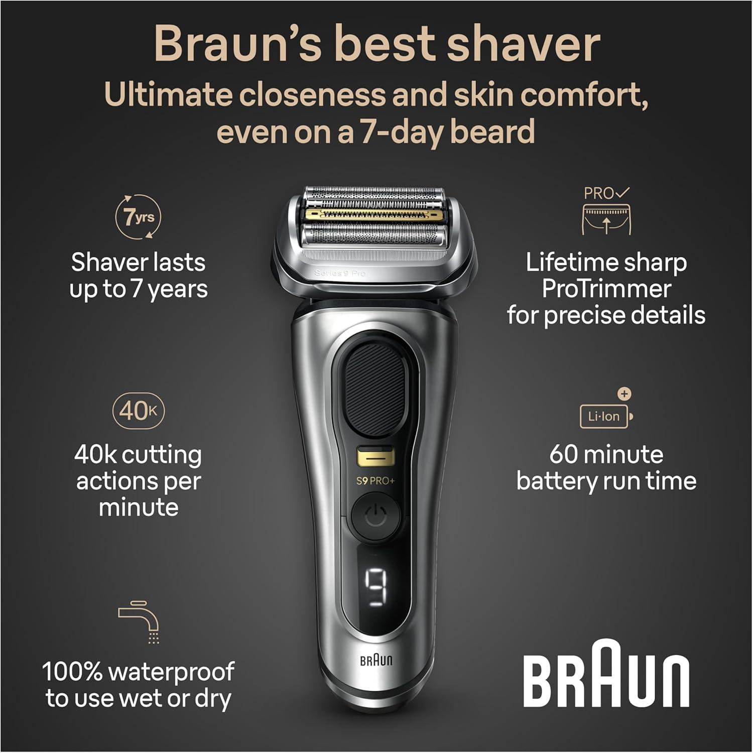 INCLUDES: Braun Series 9 PRO+ 9517s Men's Electric Shaver with built-in Precision ProTrimmer, Charging Stand, Fabric Razor Travel Case and Cleaning Brush